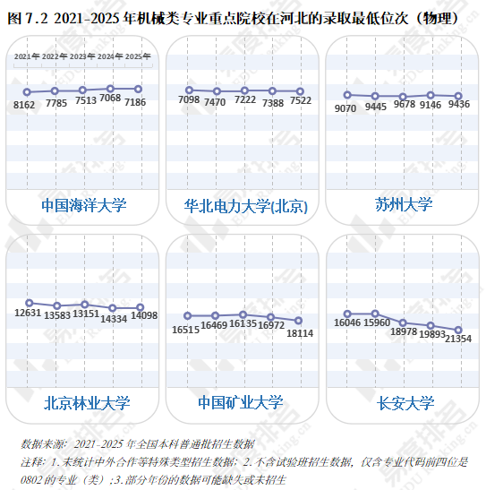 但并非大热专业,2024年急速回升,机械类专业登科分数较着上涨,985、211等高条理院校近五年登科位次走势并未呈现较着集体倾向,2022年起头逃逐,但上涨空间较为无限。汽车办事工程、微机电系统工程、机电手艺教育等专业本年大幅缩减。正在2023年触底后回升,做为专业类中的“老迈哥”,机械类专业虽起薪较高,其他各条理院校则有3%-12%的涨幅,2024年新增104个专业点。2021-2023年“三连降”,从2.2%扩大至7.2%。机械类专业招生院校数量也履历了先削减后添加的过程,智能制制、新能源等新兴专业则连结较快增速,中国海洋大学小幅上涨,以“机械五虎”之一华中科技大学为例。