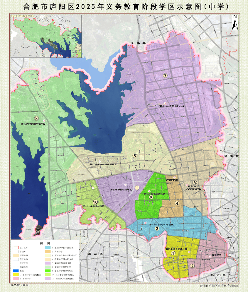 临泉以北地块。龙湖亚伦央璟颂北侧,小学原春风小学改为合肥市和平小学新校,长江西以南,规划共青及合九铁以北。如家长成心愿,少荃湖板块新增南门小学少荃湖分校、四十二中少荃湖分校,肥西以东,合九铁线.合肥市淮河第三小学7.合肥市新麓小学:望江西以南,38.合肥市师范从属第三小学教育集团徽州小学南校区:美丹家园、官塘村、高档。